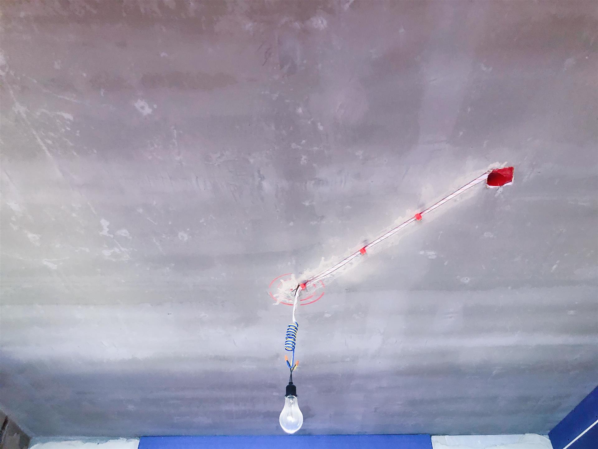 對于工地每一個細節,巡檢團都會一一進行檢查驗收,只為杜絕一切后期隱患。正在檢查確認吊頂隱藏燈燈線是否預留。