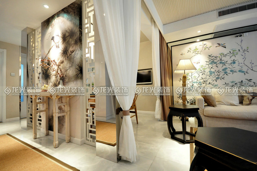中式風格的裝飾主要體現在傳統的家具,再輔以字畫、盆景,陶瓷、古玩、屏風等裝飾品,最求的是一種修身、齊家的生活境界。在整體的色彩選擇上以莊重的紅黑為主,體現中式文化深沉、厚重的底蘊。
