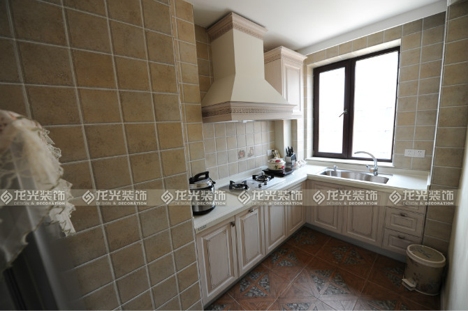3廚房區域采用半敞開式設計,這種設計不僅感覺空間上會更明亮些,而且大大增加了廚房的實用性,吊頂區域不同以往采用集成吊頂,而是采用防水石膏板吊頂,雕花做舊的木質櫥柜和墻面暖色小塊仿古磚的搭配,顯得整體廚房空間更加整潔大氣,在看不到的櫥柜內部還增加了更加強大的垃圾處理機,凈水器等。