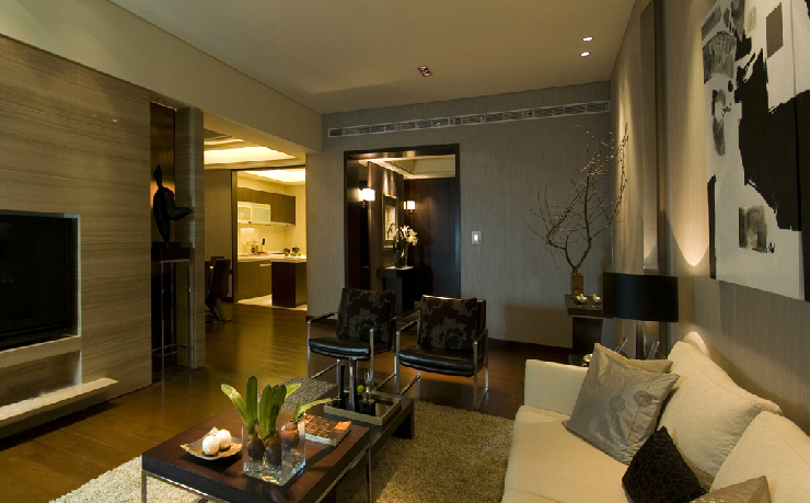 此居室整體采用中性色調,穩重,大氣,卻又不失品位,有令人眼前一亮的感覺。最重要的是強調功能性設計,線條簡約流暢,色彩對比強烈,這是現代風格家具的特點,能給人帶來現代、時尚,大氣的感覺。由于裝飾元素少,以軟裝去營造家居空間,要給居室留下變換的空間,與現代風格的硬裝進行配合,才能顯示出美感。例如沙發需要靠枕、茶幾需要地毯、餐桌需要餐布、床需要窗簾和床單陪襯等,軟裝搭配是現代風格家具裝飾的重點。